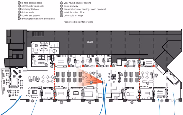 The new location is being designed with merchants at top of mind. With an open market layout, it will include 22,000 SF of front of house space for 20 merchant stalls to operate from, and approximately 10,000 SF of back of house space with loading docks. In addition, the new market will be able to accommodate both small and large events and offers direct indoor and outdoor access.
